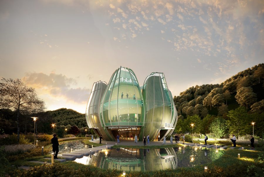 The rising image is expressed through the illumination of the petals surrounding the structure, and the streamlined structure such as white flowers blooming in the forest saves locality and contributes as a new tourism product in the community